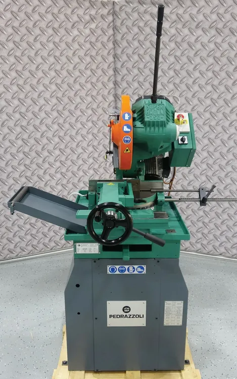 Ideal for safe sawing of ferrous or nonferrous tube, pipe and profiles. Pedrazzoli’s semiautomatic cold saw improves, productivity and cut quality while extending blade life. Saw head down feed and return movements are adjustable with pneumatic controls. Pneumatic vise firmly supports material throughout cut providing burr free parts with less heat transfer. Control panel is conveniently located to operator in front of saw.